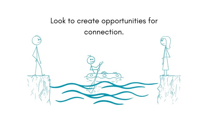 If you are a leader, a coach, a teacher, or someone who gets to shape and influence environments and conversations, think about the spaces between people and how you can help them navigate those. Does everyone have the skills they need to connect? Does anyone need a bigger boat to make the journey across? How can you help? How can you create an environment that invites connection and belonging?