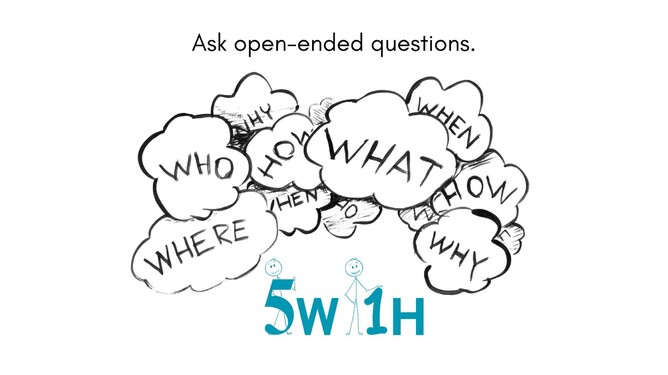 A useful way to remember how to ask open-ended questions is 5W 1H. See if you can start your questions with