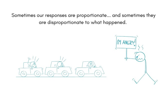 Depending on circumstances and how we are feeling in the moment, we might react differently to the same event. We might over- or under-respond; or have a proportionate or disproportionate reaction to something.