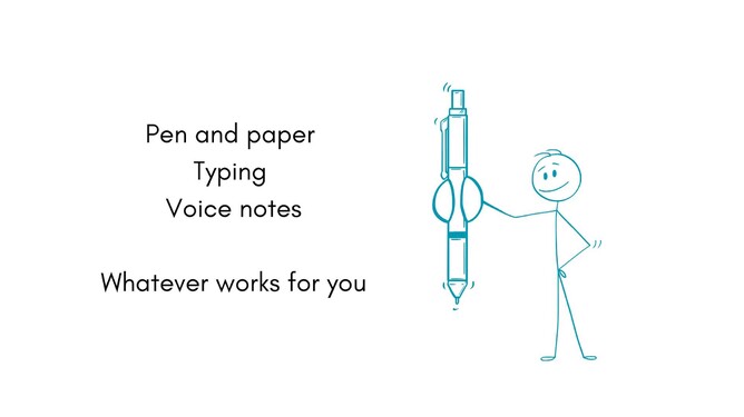 Find your own way of doing it. You might need to experiment a little. To be honest, I am a bit of a stationery nerd. So I like to have a nice notebook and a nice pen to write with. But you don’t need either of those. A plain notebook and a cheap pen will do… because if we are honest…