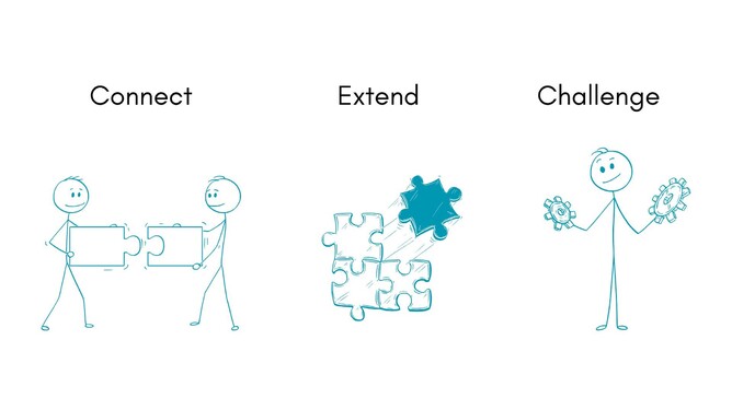 Another one I like is Connect, Extend, Challenge… This is a thinking routine which focuses on creating a connection between your prior knowledge and any new information. I have used it with students to reflect on what they have learnt. It was developed as part of the Visible Thinking project at Harvard Graduate School of Education. It is really useful to develop critical thinking skills².
