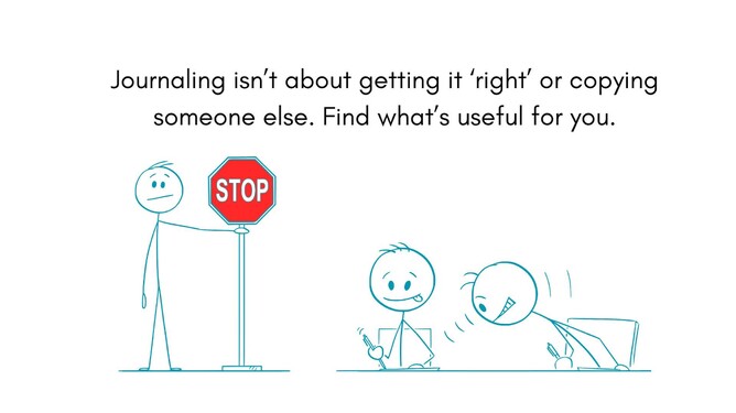 Remember that you are journaling for you. Only you. No one else will see this unless you choose to share it with them. Experiment. Find what works best for you.