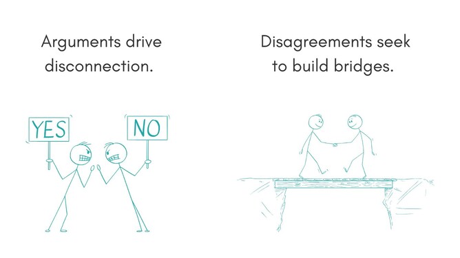 Disagreements and arguments are two different things. Make sure you know which one you are currently engaged in.