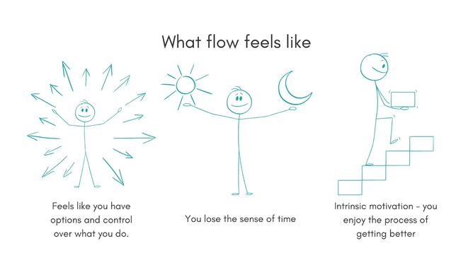 Flow encourages a positive emotional state - being present and focused in the moment lowers stress and anxiety, which, in turn, enables a more positive emotional state.
