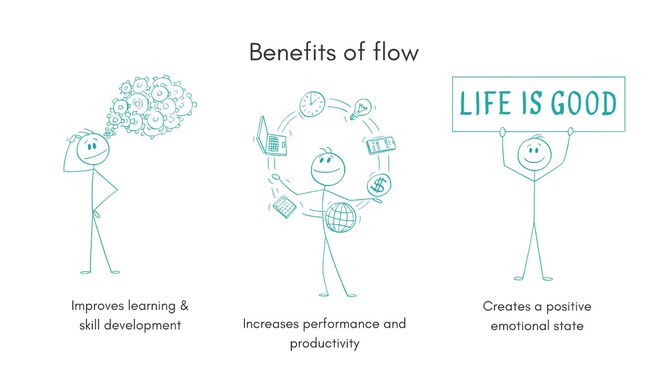 Flow supports our learning and skill development and increases creativity. Working in flow is also more enjoyable and contributes to a positive emotional state.