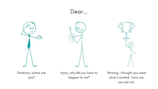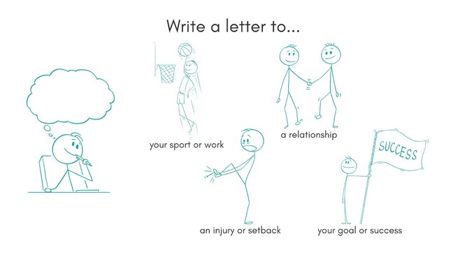 Use the letter to write down whatever you would like to say to it. Many people find writing a letter to a ‘thing’ like it is a person helps them articulate what has sat inside them in silence for too long. Writing a letter to an injury often brings out layers of frustration, sadness, concern, anger, and desperation. It also brings out what athletes have learned from it.