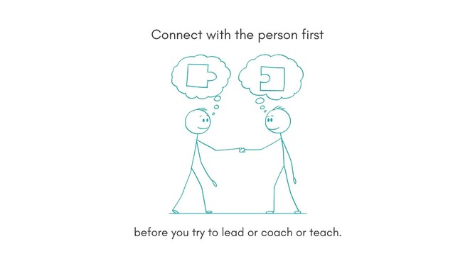 We also know that some of the best athletes actually didn’t end up being great coaches, and we know that some of the world’s most renowned experts don’t make the best teachers. Just because you know or can do stuff well, that does not mean you can teach or coach people in it equally well. To do that, you need to be able to connect with people. You have to be curious about people, about who they are, about what they care about. And to do that, you can’t leave people implied. You need to make them the focus.
