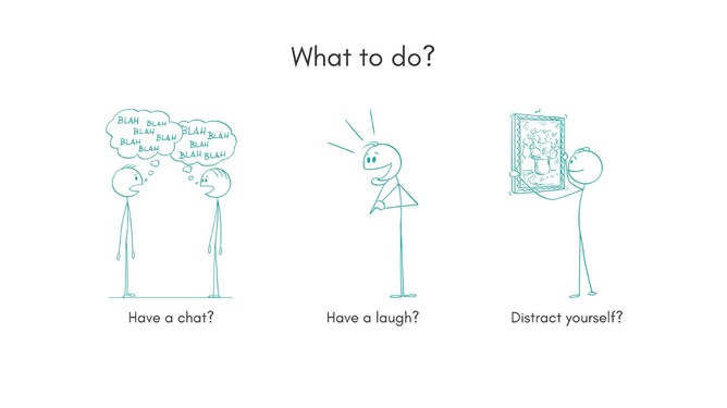 Laugh. Easier said than done if you’re getting frustrated. But it does help release some tension. It is very difficult to stay all tight in your shoulders when you are having a proper laugh. So I would recommend finding someone to laugh with about the situation, or, alternatively, other sources of humour: books, videos, jokes, etc.