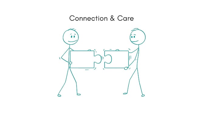 In my mind, they describe psychological safety. Psychological safety has three main ingredients: trust, respect for each other’s competence, and genuine care for each other as people. As you can see, care is already one of the key ingredients, and, to me, connection is made up of trust and respect. Simple. Though not necessarily easy to create.